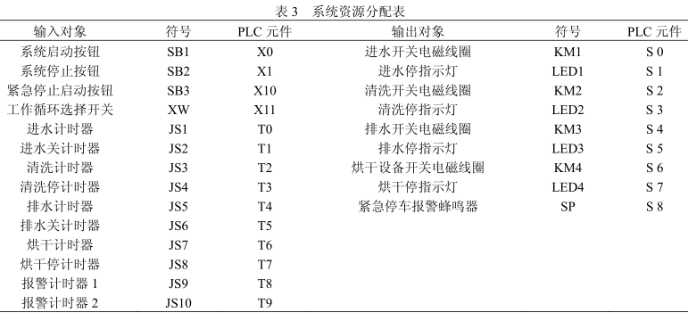 在確定了控制對象、 控制內容后, 對 PLC 資源分配就如表 3 所提示: